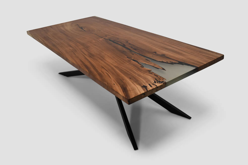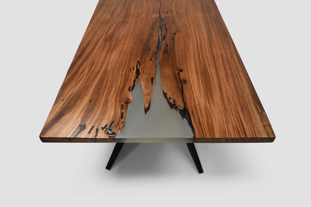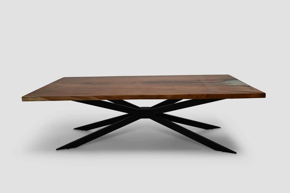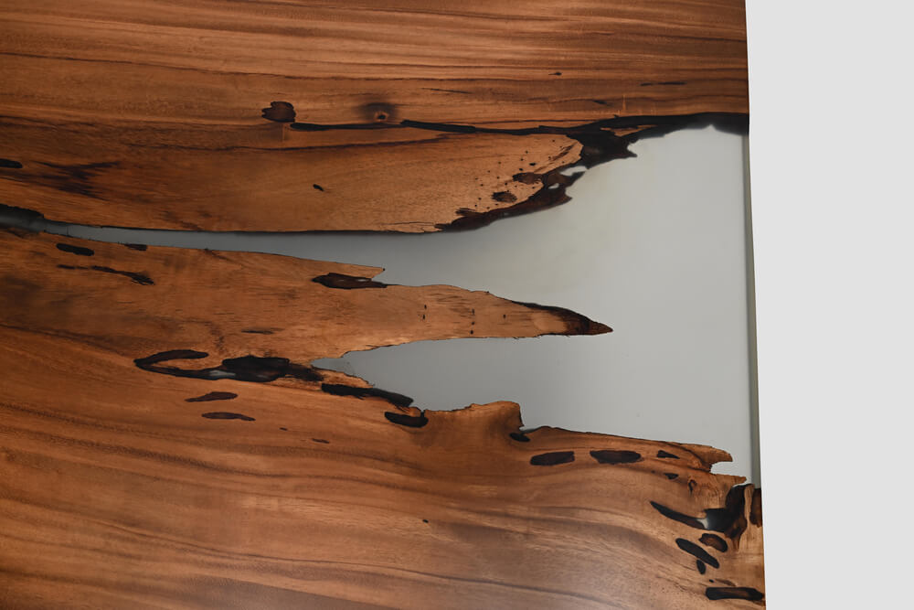 This beautiful piece is crafted from solid parota wood and detailed with a flowing band of transparent resin. The organic patterns and tonal contrast highlight the unique character of the wood, while the resin adds clarity and depth. With its generous size, Luxa seats 8 to 10 people comfortably – perfect for gatherings in spacious dining areas.