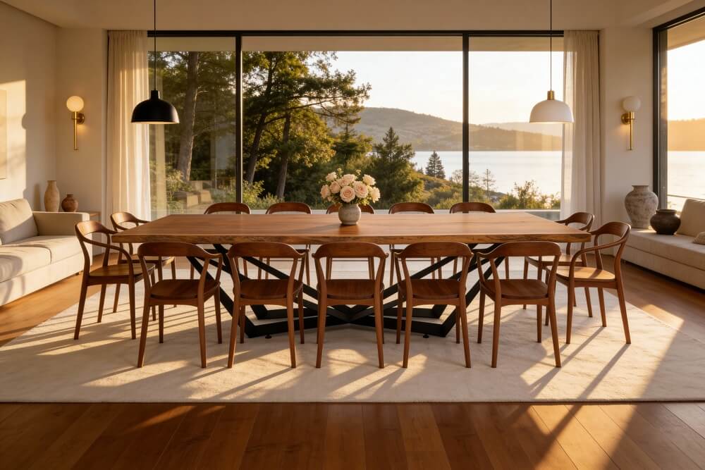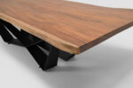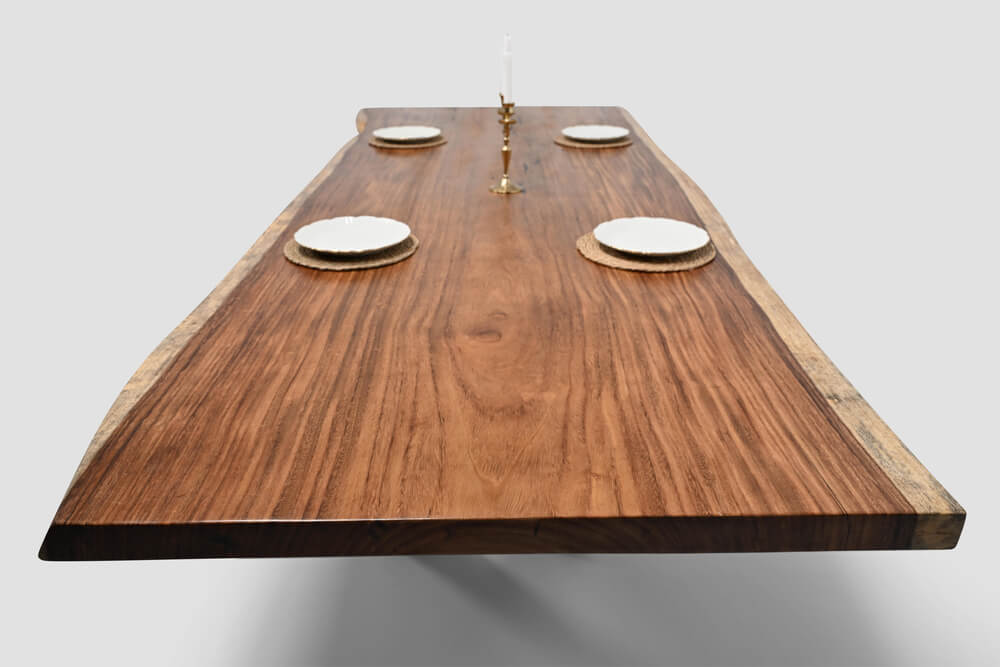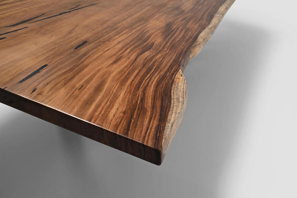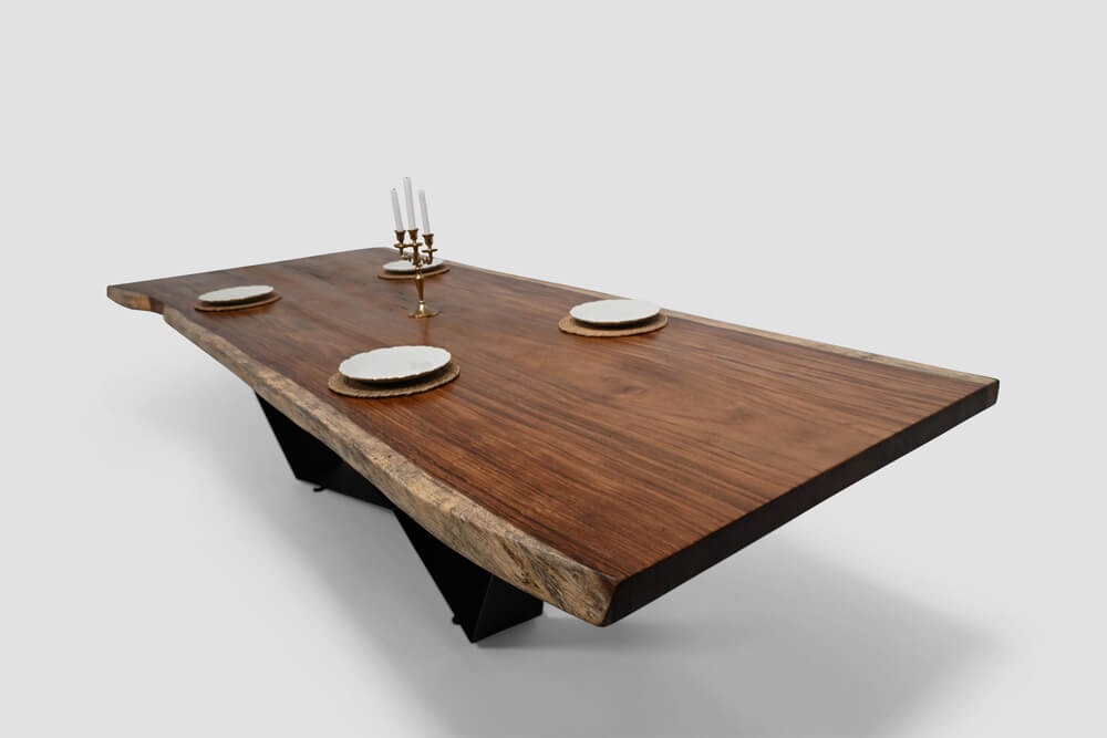 Montreux is a grand dining table made from solid parota wood. Its impressive length comfortably accommodates large family gatherings, offering each guest their own space at the table. The generous width adds a sense of elegance and presence, creating the perfect surface for centerpieces, tableware, and décor that allow the natural beauty of the table to shine. It is also an ideal option for restaurants or spacious homes where a statement piece can truly shine.