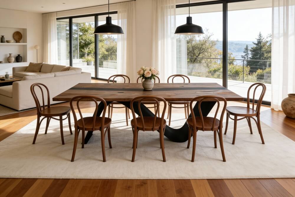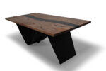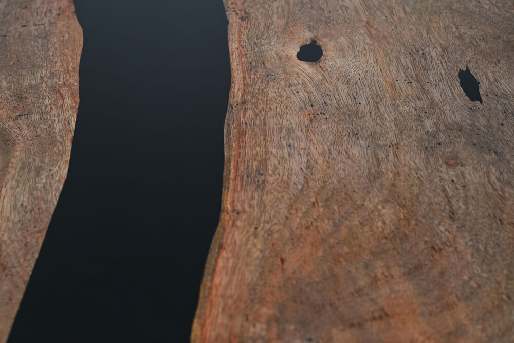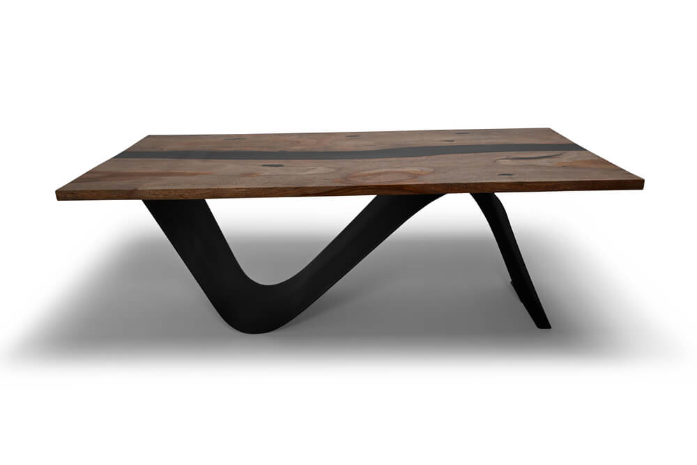 Designed to gather around. This table brings warmth, texture, and a touch of the unexpected to any space. Made from Costa Rican Wild Cashew wood, its flowing grain and rich tones are framed by a black resin detail that adds quiet contrast. Whether for shared meals or slow mornings with coffee, it invites connection—naturally.